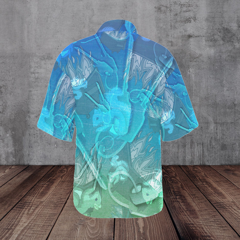 The term "Aloha Alternative" was coined with a very broad definition in mind. It includes any pattern that I think captures the essence of the traditional Hawaiian shirt and its descendants. Bold, vivid, and saturated colours are often at play here, as is strong contrast. The use of repeated symbols and images around a theme is also a common feature of this casual favourite, and I have leaned into that tradition very eagerly. My love of abstract sometimes influences the results as well.